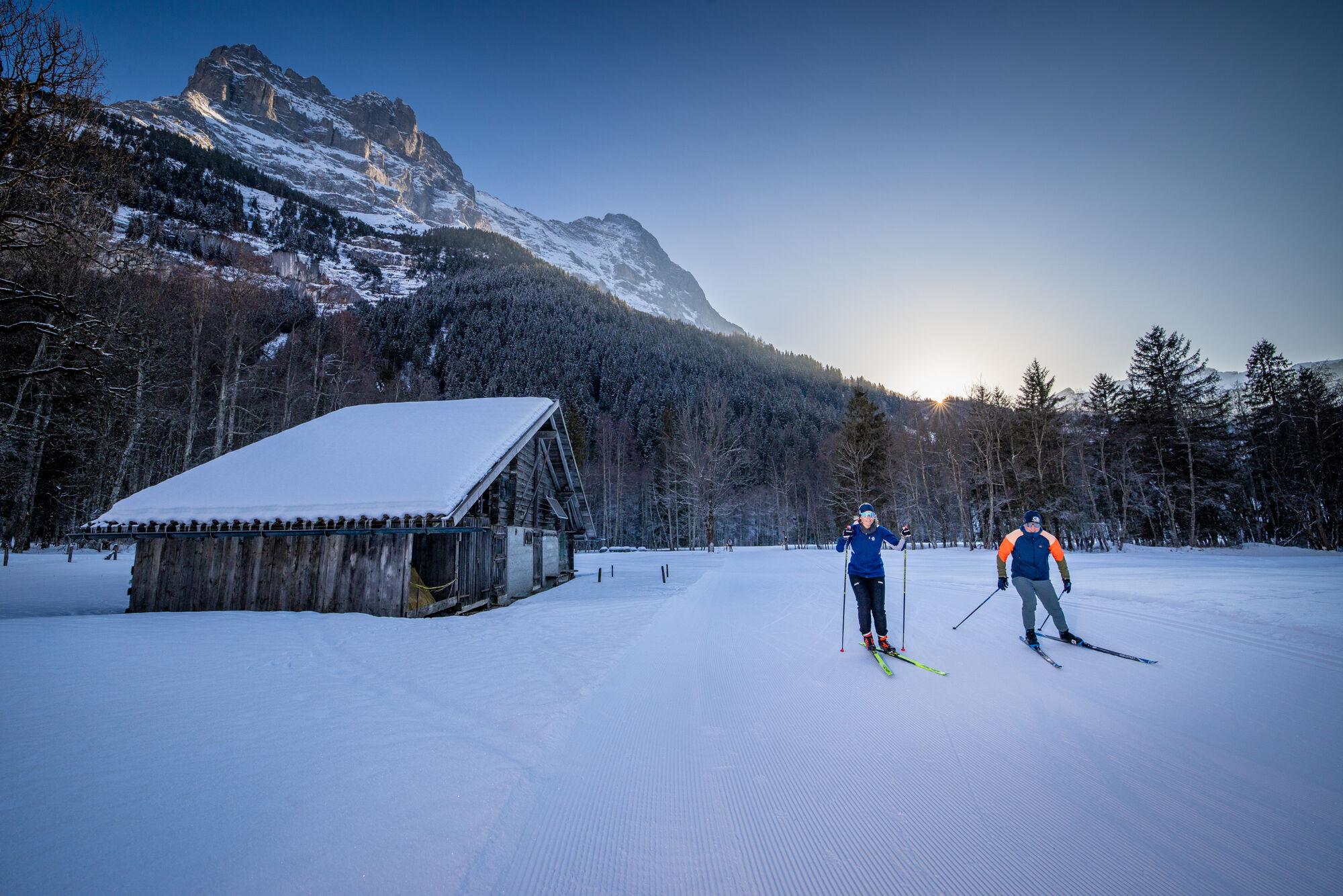 In addition to 9 km of classic and 10.5 km of skating trails, the Grindelwald cross-country track offers a wonderful view of the surrounding snow-covered mountain peaks.