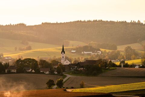 Die Rundtour durch sanftes Hügelland ist eine der schönsten Strecken im 242 km langen Bad Griesbacher Wandernetz. Startpunkt ist die ehemalige Schule im Ortsteil Weng, wo 1824 Johannes Birndorfer unterrichtet wurde. Der spätere Laienbruder aus dem Kapuzinerorden wurde 1934 als „Bruder Konrad“ heiliggesprochen und ist Stadtpatron der Rottaler Kur-Stadt.Von Weng geht es nach St. Wolfgang in die „Neue Welt“. Dort lohnt sich ein Besuch in der Wallfahrtskirche. Zwei Meisterwerke des Griesbacher Bildhauers Wenzel Jorhan zieren den barocken Hochaltar im spätgotischen Innenraum. Vom idyllischen Weiler St. Wolfgang mit den vielen Obstbäumen und tollen Ausblicken geht es weiter nach Schnellertsham. Etwa die Hälfte der Strecke führtdurch lauschigen Mischwald, was besonders im Hochsommer sehr angenehm ist. Die wunderschöne Aussicht vom Golfplatz Lederbach auf die Bad Griesbacher Altstadt ist einen Abstecher zum Waldrand wert und zur Belohnung für die insgesamt 230 Höhenmeter geht der Rückweg von dort auch fast ausschließlich bergab.Beim Bodenbelag wechseln sich Teerstraßen mit Wald- und Feldwegen ab. Nach der Wanderung lässt es sich hervorragend in der Bad Griesbacher Wohlfühl-Therme entspannen. Das heilkräftige Thermalmineralheilwasser lockert die Muskeln und sorgt für wohlige Entspannung.