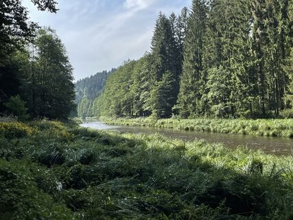Gemütlich entlang der Ilz zur Schrottenbaummühle. Hier befindet sich ein Campingplatz und eine Gaststätte!