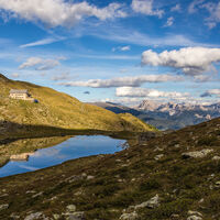 The lake Radlsee is located at an altitude of 2,250 m on the Feldthurns mountain pasture and is a popular hiking destination, especially in the warmer months. The Radlsee hut is located directly at the mountain lake, where you can stop to cool off after a hike of about 2.5 hours. The Radlsee not only offers a breathtaking mountain panorama but is also very much appreciated for its tranquillity and isolation from the stressful hustle and bustle of the cities.