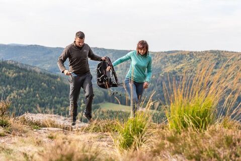 Suivre le balisage du Club Vosgien, anneau jaune puis anneau vert.