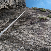 Danach ca. 20-25min zum Einstieg des Senza Confini (Weg ohne Grenzen). Der Klettersteig ist sehr ausgesetzt und Schwierigkeit "D". Komplette Ausrüstung erforderlich und notwendig.
