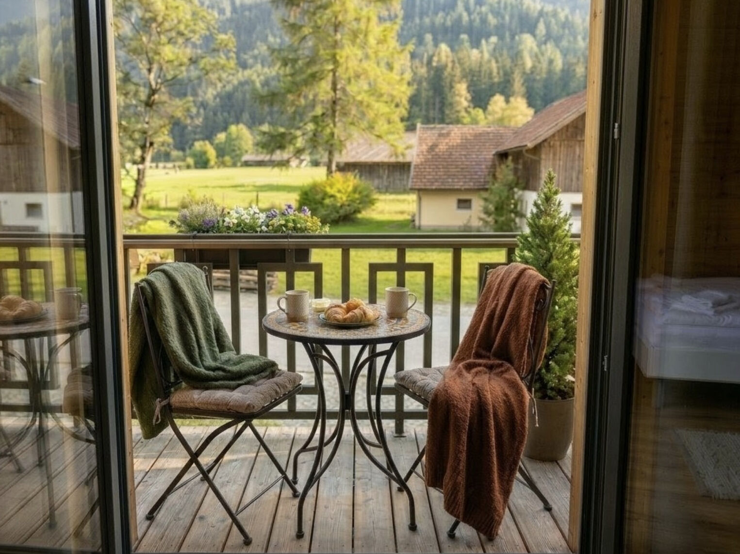 Relax after an active day on the balcony or in the garden overlooking the Alps.