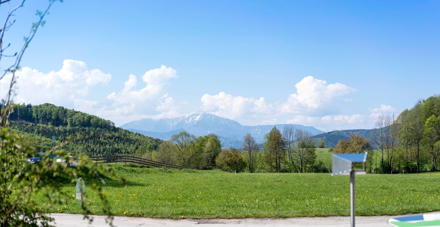 Comenzamos la Ruta Regional Q en la estación de Puchberg/Schneeberg y caminamos los primeros metros hasta la carretera principal. Nuestro primer destino es Öhlerschutzhaus, así que pasamos por encima de las vías y seguimos la carretera principal unos metros antes de dejarla a la izquierda en Sierningstraße (marcada en azul) y caminar cuesta arriba junto al arroyo Schoberbach. Antes de llegar a la granja Haltberghof, tomamos el camino Öhlerweg a la derecha en la bifurcación y nos adentramos en el bosque. El sendero del bosque está marcado en azul y nos lleva cada vez más alto, a veces divisamos las primeras vistas de Puchberg y el Schneeberg. Una tabla de motivación nos ayuda a superar las pendientes y pronto llegamos a la Öhlerschutzhaus. Aquí cruzamos el sendero de los Alpes vieneses, que continúa sobre el Dürre Wand hasta el Gauermannhütte.