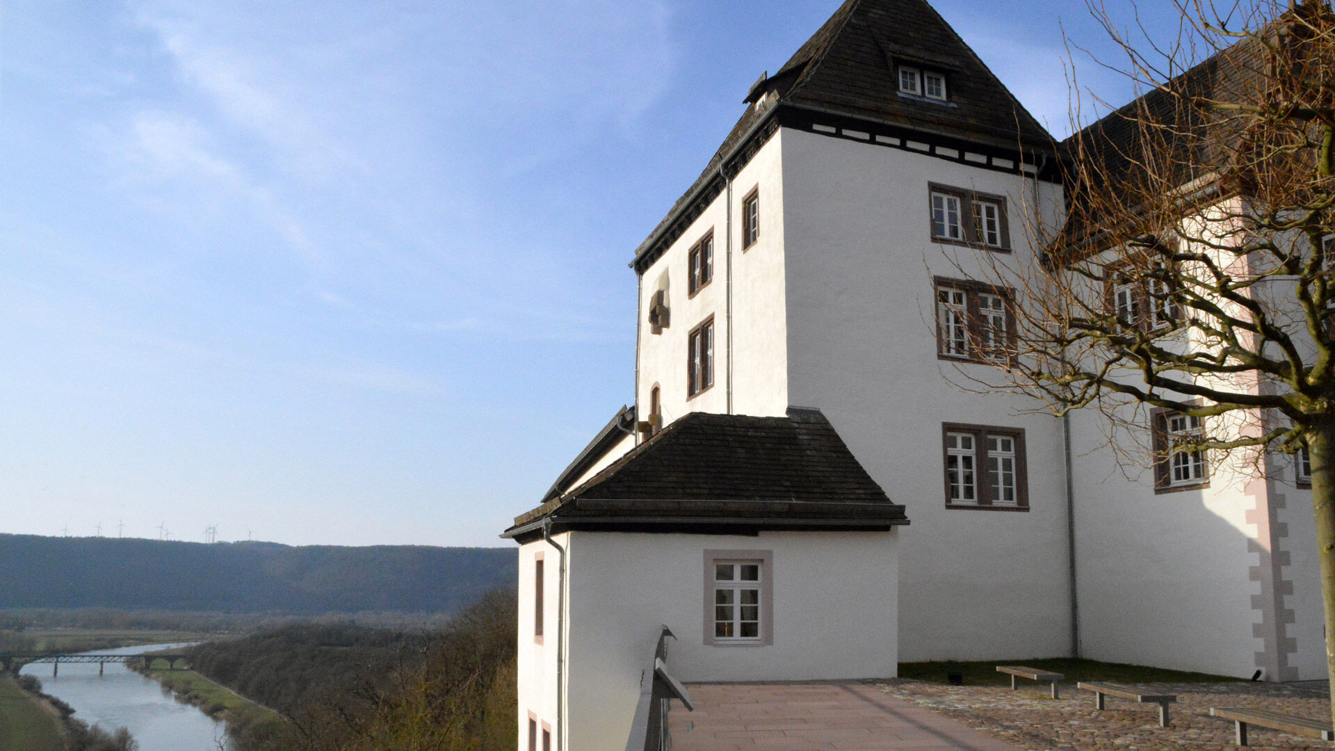 Wer auf dem Rückweg die Gelegenheit zum Besuch des Museums im Schloss Fürstenberg nutzen möchte, stellt am besten sein Fahrrad am Dampferanleger Fürstenberg ab und folgt dem kurzen aber steilen Waldweg. Die Mühe lohnt, denn vom Schlosshof werden Sie mit einem herrlichen Blick ins Wesertal entschädigt