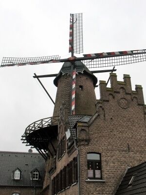 Nach erfolgter Stärkung radeln wir auf dem wunderbar ausgebauten Alleenradweg , über Marienbaum, nach Appeldorn und weiter bis zur Kalkarer-Mühle . Ein Teil der Mühle ist bewirtschaftet und kann besichtigt werden.
