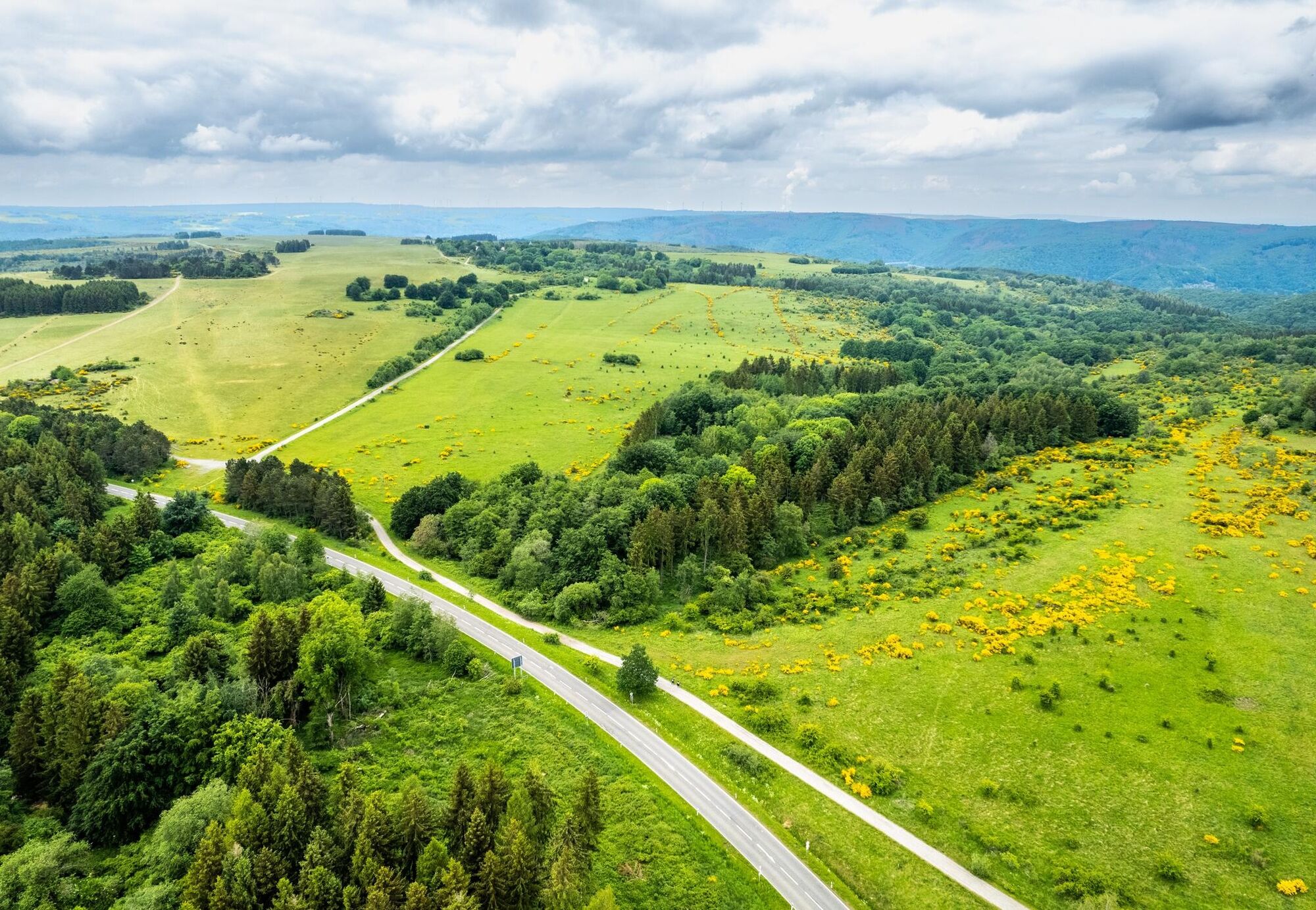 Wenn man diese Wanderung zwischen Ende Mai und Mitte Juni macht, ist die Wahrscheinlichkeit hoch, dass Du das "Eifelgold" in seiner vollen Pracht erlebst. Gemeint ist der Besenginster mit seinen strahlend gelben Blüten. Große Teile der Dreiborner Hochfläche verwandeln sich in der Blütezeit zu einem gelb leuchtenden Blütenmeer.