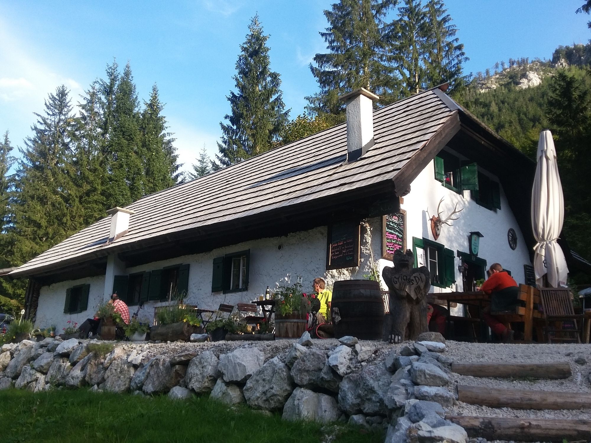 Nach einer ausgiebigen Pause gings retour und wir suchten einen direkten Weg Richtung Mairalm rechts den Berghang hinunter. Am Forstweg angekommen folgten wir diesen schließlich bis zur Mairalm, wo wir uns eine kühle Blonde verdient genossen haben. Zum Abschluss folgten wir der Forststraße vorbei am Moaristidl bis zum Parkplatz