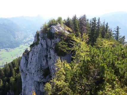 Ab hier weiter ohne Markierung am Grad Richtung Wandlkogel. Links am großen Felsen vorbei und dann retour zum Gipfelkreuz.Hier ist Trittsicherheit gefragt, da es kurz etwas ausgesetzt zum Gipfelkreuz hinauf geht. Der Ausblick entlohnt jedoch die bisherigen Strapazen.