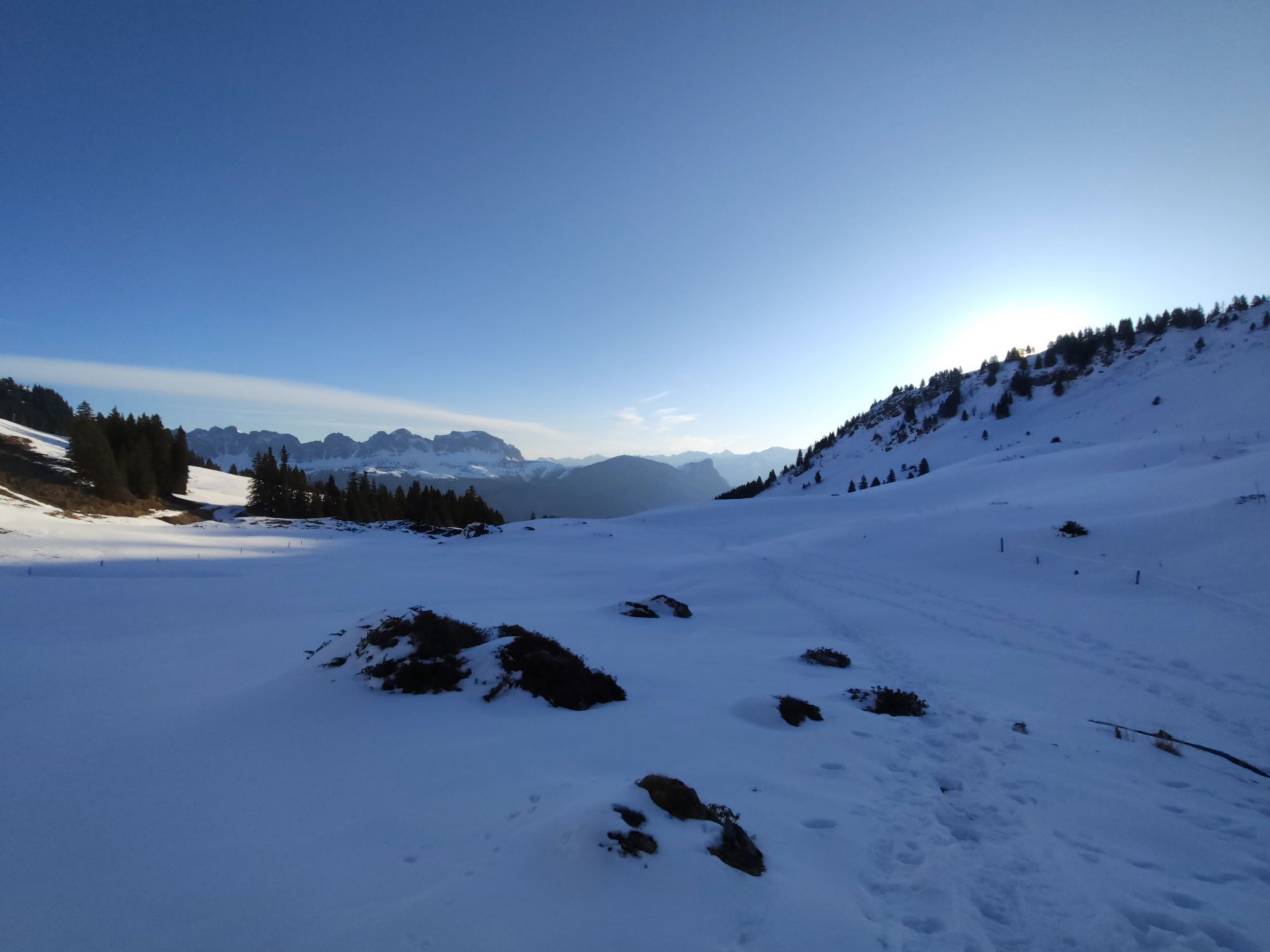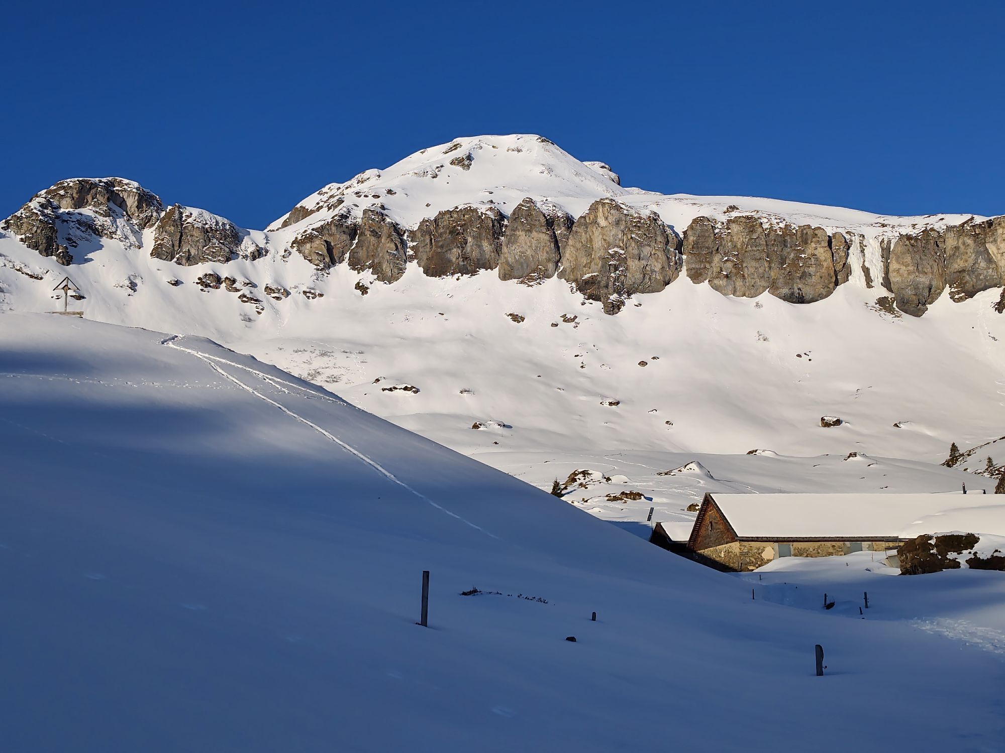 El camino desde la estación superior pasa por praderas y bosques dispersos. Después de aproximadamente media hora se sale del bosque y se alcanza la amplia y abierta zona de turbera y alpina Fulriet/Mädems. En los edificios alpinos de la Alp Mädems (donde se puede comprar queso alpino delicioso) el camino se desvía a la derecha y sigue la subida por la ladera hasta Chammhüttli.