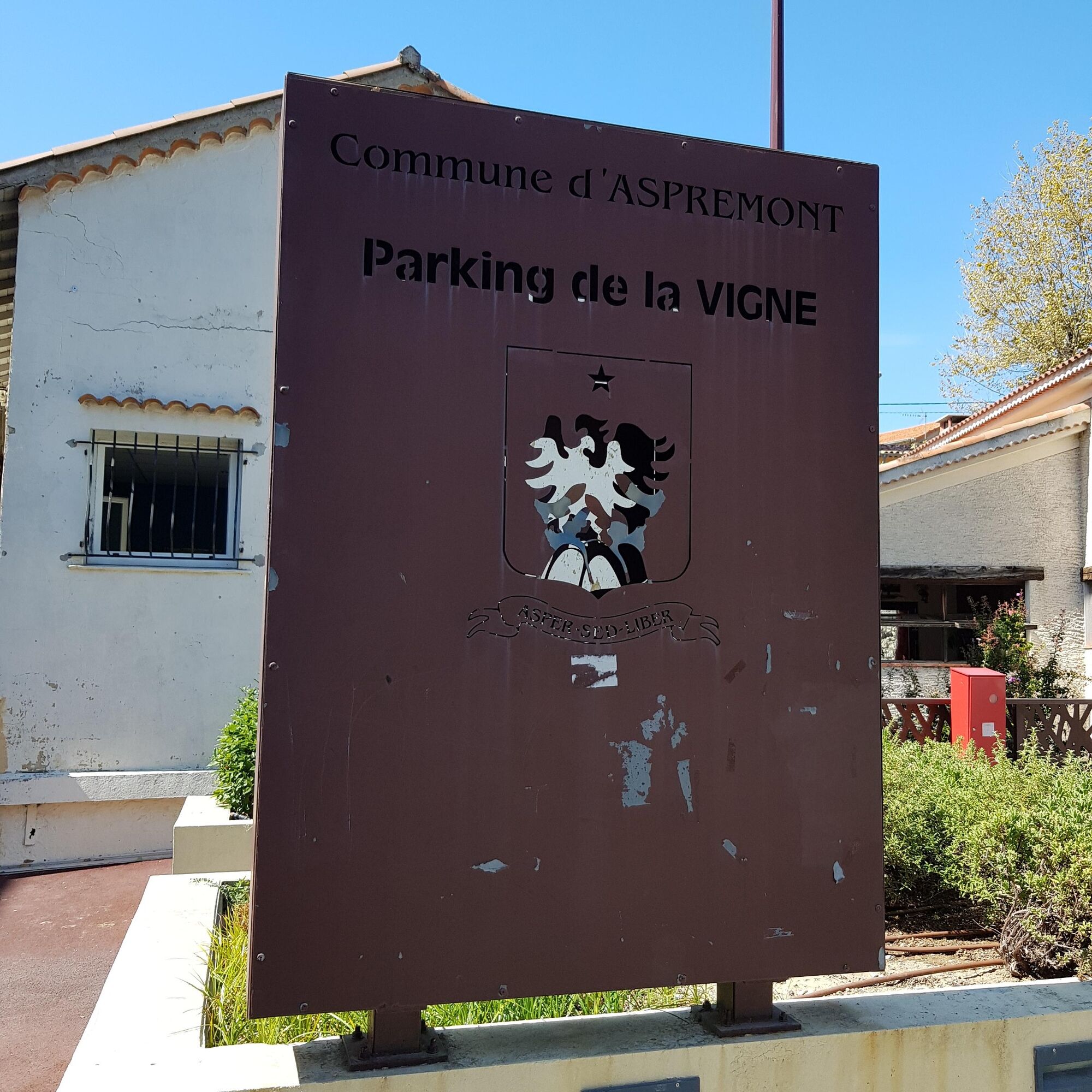Gran aparcamiento gratuito "parking de la vigne" a la entrada del pueblo (35 route de Colomars Aspremont)