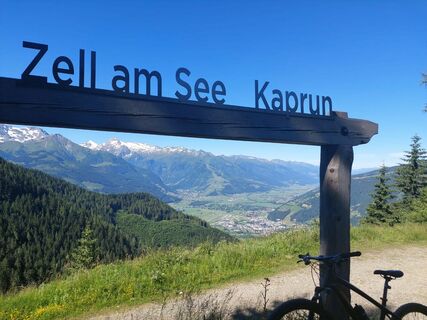Am Parkplatz fahren wir rechts raus, über die erste Kreuzung gerade, dann hinter dem Lebensmittelgeschäft links zum Sportplatz, an diesem vorbei bis zum Steinberg, dort rechts in den Weiler Mayerhofen und entlang der Gemeindestraße bis zur Abzweigung Peilerweg, dort links steil bergauf. Nach der ersten Kehre die zweite Einfahrt rechts aufwärts entlang einer Forststraße, dieser in mehreren Kehren folgen, ehe sie im Bereich einer Kurve auf die Mitterberg-Zufahrtstraße trifft. Dieser nun links bergwärts folgen – in wenigen hundert Metern erreicht man den ersten Aussichtspunkt mit Einkehrmöglichkeit. Danach der Asphaltstraße talwärts folgen. Kurz bevor diese in die Landesstraße einmündet, links abbiegen, nun wieder bergauf in Richtung Enzianhütte. Kurz vor der Hütte ändert sich der Belag von Asphalt auf Schotter, der Weg führt weiter bergwärts – immer wieder bieten zahlreiche Stellen einen herrlichen Tiefblick auf den Zeller See und die umliegenden Berge der Hohen Tauern. Oberhalb der Enzianhütte zweigt der Forstweg rechts in Richtung Erlhofplatte ab. Ab nun talwärts auf breiten Forststraßen bis zu einem Weiler, ab dort folgt man der Asphaltstraße bis hinunter nach Bruck, an der Hauptstraße rechts in die Ortsmitte, dort über die Brücke und gegenüber der Kirche rechts der Gemeindestraße folgen. Eine weitere Brücke führt abermals über die Salzach, ehe man im Bereich eines Gewerbegebiets wieder auf den Radweg trifft. Über die Promenade nach Schüttdorf und entlang des Zeller Sees am Radweg zurück nach Maishofen.