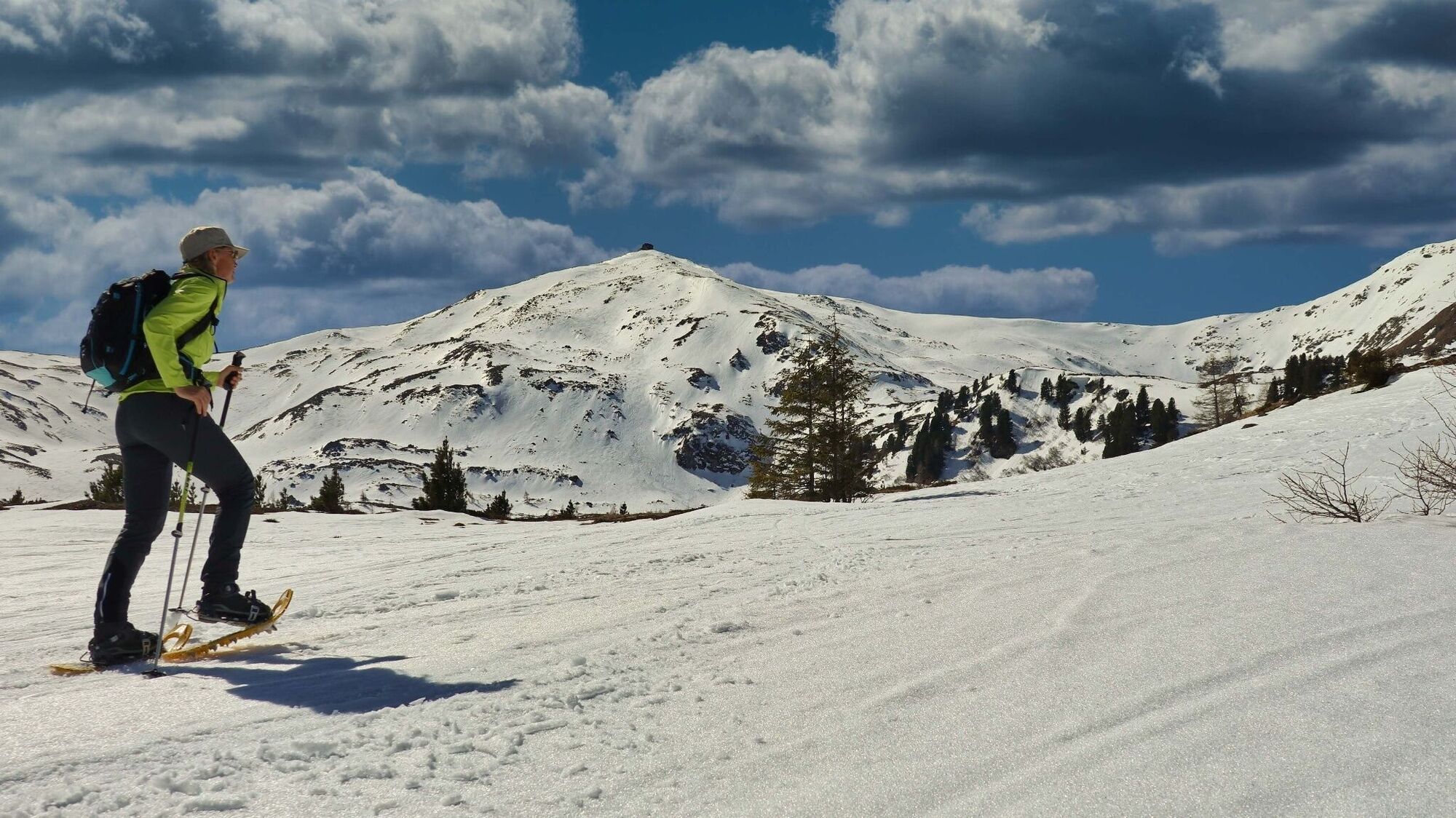 Mit dieser Wanderung lernt man den hochalpinen Charakter der Seetaler Alpen kennen, obwohl man auf technisch einfachen Wegen bis zum Lindersee unterwegs ist. Die imposante Kulisse der Ostseite der Seetaler Alpen und der freie Blick auf das Zirbitzkogel-Schutzhaus auf 2376 m Seehöhe begleiten uns fast während der gesamten Wanderung. Die Orientierung ist relativ einfach, da man sich an der Skitouren-Aufstiegsspur auf den Zirbitzkogel halten kann, die zum Teil mit Schneestangen markiert ist. Der erste Teil des Weges führt moderat ansteigend bis zur Linderhütte, wodurch man den Körper gut aufwärmen kann, bevor der steilere Abschnitt beginnt. Die weitläufige Karlandschaft, mit dem eingebetteten Lindersee, ist ein lohnendes Ziel. Auch wenn der Zirbitzkogel beim Lindersee zum Greifen nahe scheint, empfiehlt sich der steile Aufstieg mit Schneeschuhen nicht. Eine sehr schöne Variante, um mit Schneeschuhen auf den Zirbitzkogel zu wandern, ist von der Waldheimhütte weg oder über die Rothaidenhütte.
