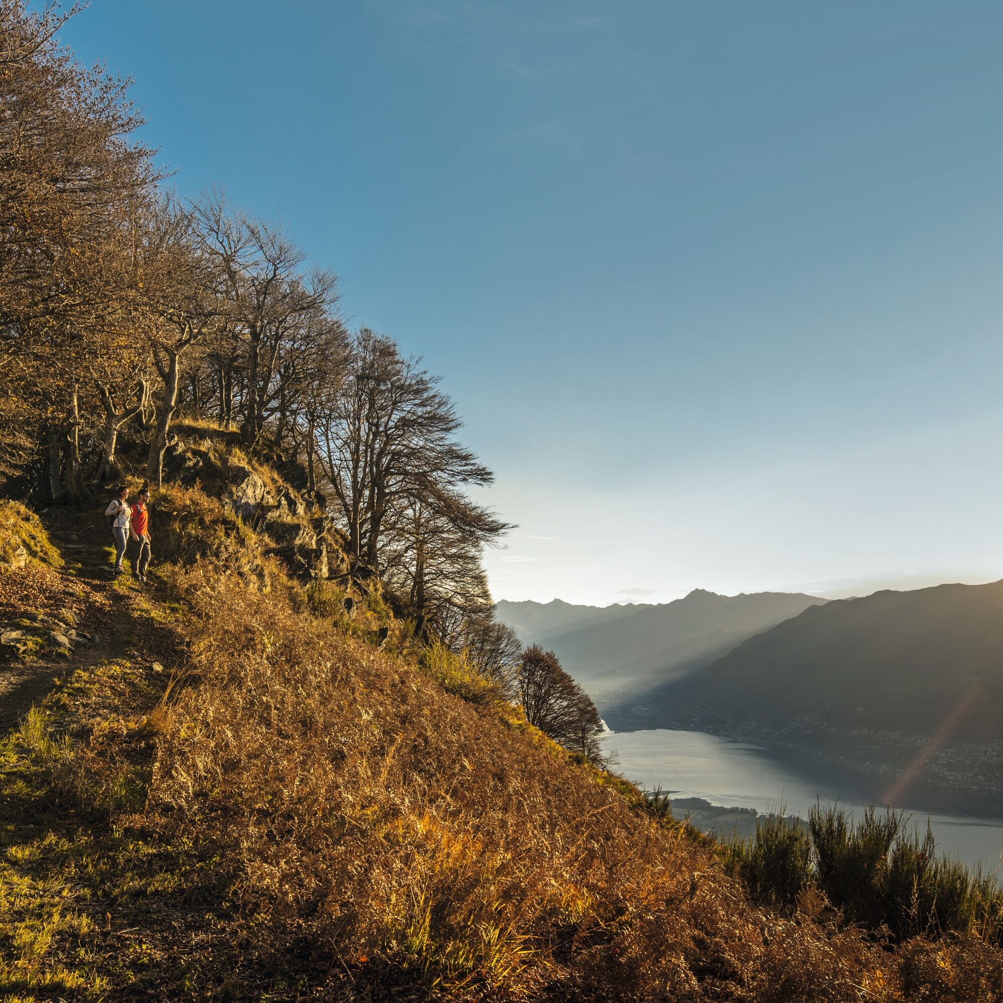 El pueblo de Ronco sopra Ascona se encuentra entre Ascona y Brissago y es accesible en autobús o en automóvil. La ruta señalizada blanco-rojo-blanco comienza con una subida por escalones empinados entre villas y jardines. A través del bosque de castaños, el sendero conduce a Non, Parcassone y Porera. La ruta entre la pequeña iglesia de Parcassone y Porera está bastante desolada debido a un incendio en el bosque ocurrido hace algunos años. Una larga curva en el Alpe Casone lleva a la Corona di Pinz. Aún queda una pequeña parte en la cresta y ya se está en el destino. El panorama sobre el lago, el delta de la Maggia y las cadenas montañosas alrededor es fantástico. Se vuelve al sendero y se continúa en dirección a Cortone (sobre Arcegno). Cruzando el hermoso paisaje del Val Brima, se baja hacia Nervone y se regresa al punto de partida, Ronco sopra Ascona, desde donde se puede tomar el autobús.