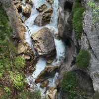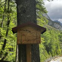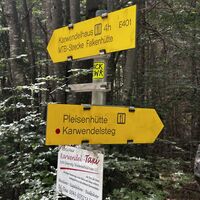 Mit dem Zug ging es von Pasing via GAP und Mittenwald nach Scharnitz. Ein immer noch leicht verschlafenes Dorf. Aber "Ihren" Karwendel lieben die Scharnitzer. Vom Bahnhof ging es Richtung Isar. Vor der Brücke sind bereits die ersten Hinweisschilder Richtung Plettsteig. Hinein ins Vergnügen an einigen Häuser vorbei in die "Grüne Hölle" - aktuell (Ende Juni 2025) wuchern die Pflanzen auf den Schmalen Steig. Es geht im Wechsel flott bergan, etwas eben gespickt mit kurzen Abwärtswegen. Am Ende dieses Steigs ist die Blitzkapelle. Ein kurzer Stopp und weiter geht es nach gut 300m links auf den Forstweg in Richtung Karwendelsteg und Karwendelhaus.