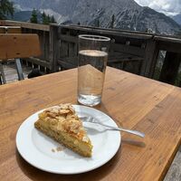 Auf 1.757 m erscheint wie aus dem Nichts die Pleisenhütte. Die Hütte zeichnet sich durch ein cooles, charmantes und super gastfreundliches Wirtspaar und Team aus. Das Essen sieht super lecker aus - am Nachbartisch gab es eingelegten Graukäse mit Essiggurken und Brot - selbst hatte ich einen super leckeren Apfel-Mandel-Kuchen. Preise sind normal.