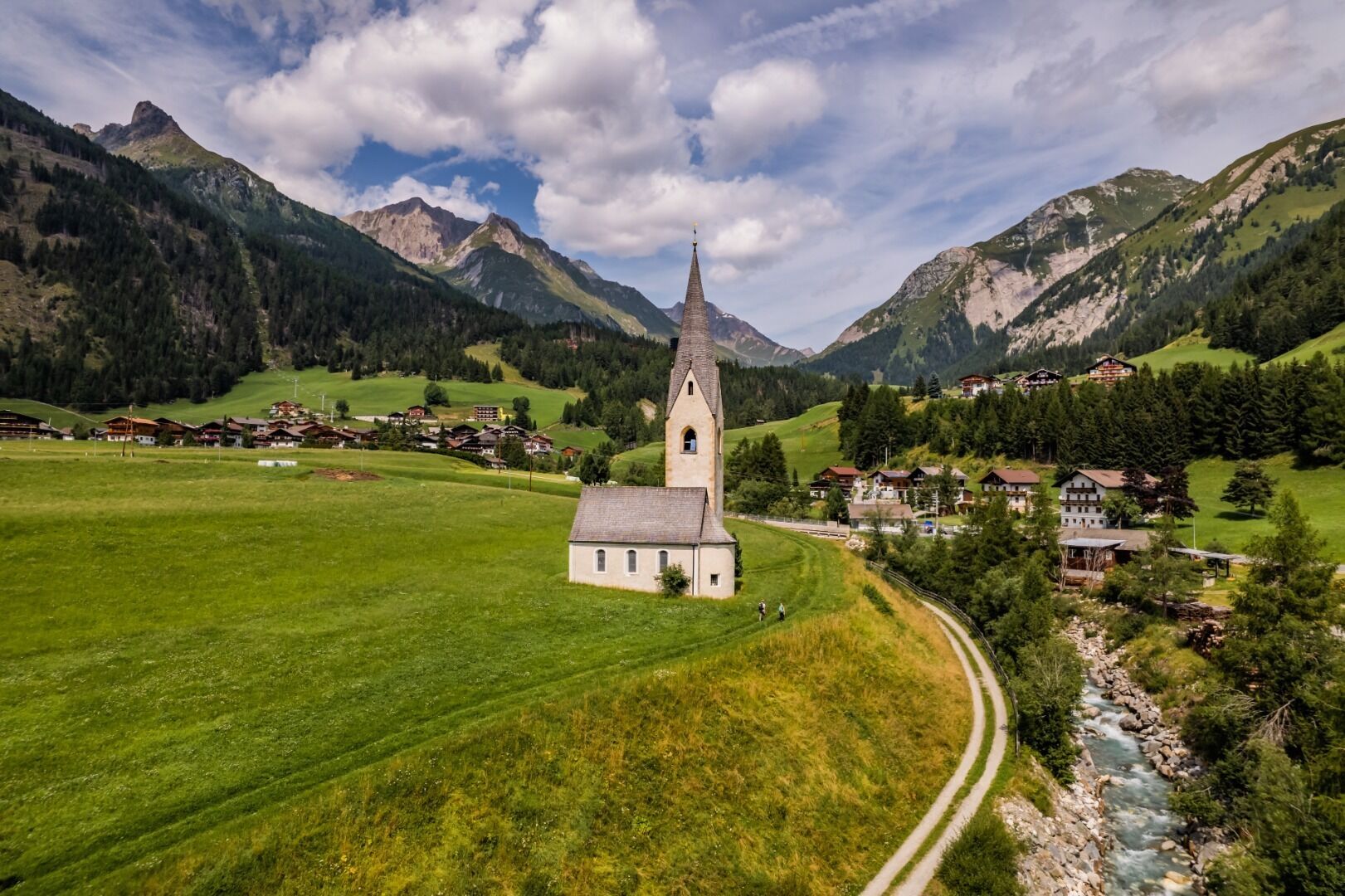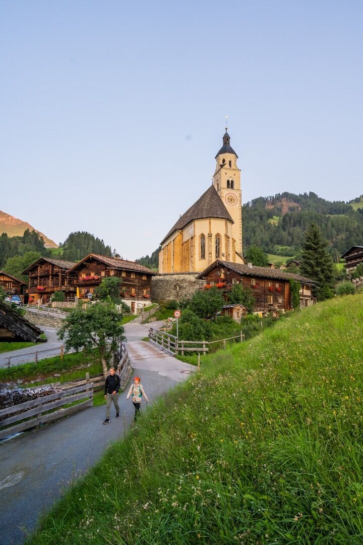 For the descent to Kals a. G., we choose the direct, steeper route no. 502B to Temblerhof. From here, our route leads across the village fields to the valley station of the gondola lift. We continue from Großdorf to Unterburg along the footpath. In Unterburg, we pass the famous Romanesque St. George's Church, which stands freely in the village fields. After the bridge, we turn right onto path no. 31 and walk on the left side of the stream to the lower Ködnitz, reaching the parish church of St. Rupert directly via path 39.