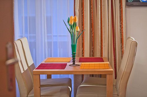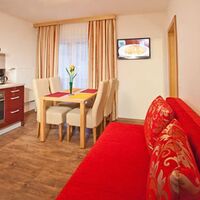 Ausstattung: Dieses Apartment besteht aus einem großen Zimmer mit Doppelbett (Möglichkeit eines Zustellbetts), einem geräumigen Wohn/Schlafraum mit Doppelausziehcouch und voll ausgestatteter Küchenzeile mit Vierplattenherd u. Backrohr, Kaffeemaschine, Wasserkocher, Geschirrspüler, Kühlschrank mit Gefrierfach.