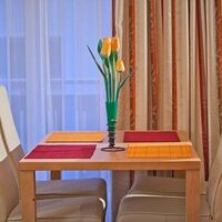Ausstattung: Dieses Apartment besteht aus einem Zimmer mit Doppelbett, einem geräumigen Wohn/Schlafraum mit Doppelausziehcouch und voll ausgestatteter Küchenzeile mit Vierplattenherd u. Backrohr, Kaffeemaschine, Wasserkocher, Geschirrspüler, Kühlschrank mit Gefrierfach.