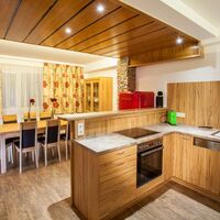 Ausstattung: Dieses Apartment besteht aus zwei geräumigen Schlafzimmern mit Doppelbetten, ein Schlafzimmer mit 2 Einzelbetten, ein Wohnraum mit Doppelausziehcouch, einer Küche mit Backrohr und Ceranfeld, Geschirrspülemaschine, Filterkaffeemaschine, Wasserkocher, Kühlschrank mit Gefrierfach, einem grossen Esszimmer.