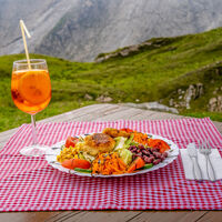 In the Krefelder Hütte there are a total of approx. overnight places available for you in cozy 2- to 5-bed rooms. In summer, the rooms are available as "dormitories" (as is usual in Alpine Club huts) and thus the use of a sleeping bag / hut sleeping bag is mandatory - however, upon request, we can also provide fresh bedding and a towel for an extra charge. We have communal showers and washrooms and toilets on every floor. Most of the rooms are additionally equipped with sinks. We also have a large new drying room with two shoe dryers, so that everything is usually dry again by morning. For your culinary well-being, we provide you with a daily menu with typical hut specialties for hikers and walkers. We are happy to offer our house guests a breakfast buffet and à la carte dishes in the evening or our half-board: This includes a hearty breakfast buffet for the perfect start to your holiday day and a delicious three-course dinner.